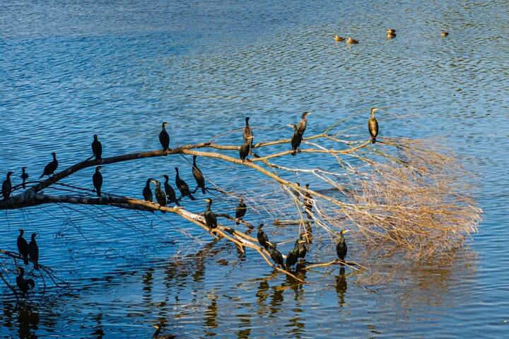南京长江新济洲国家湿地公园迎来大批过冬候鸟